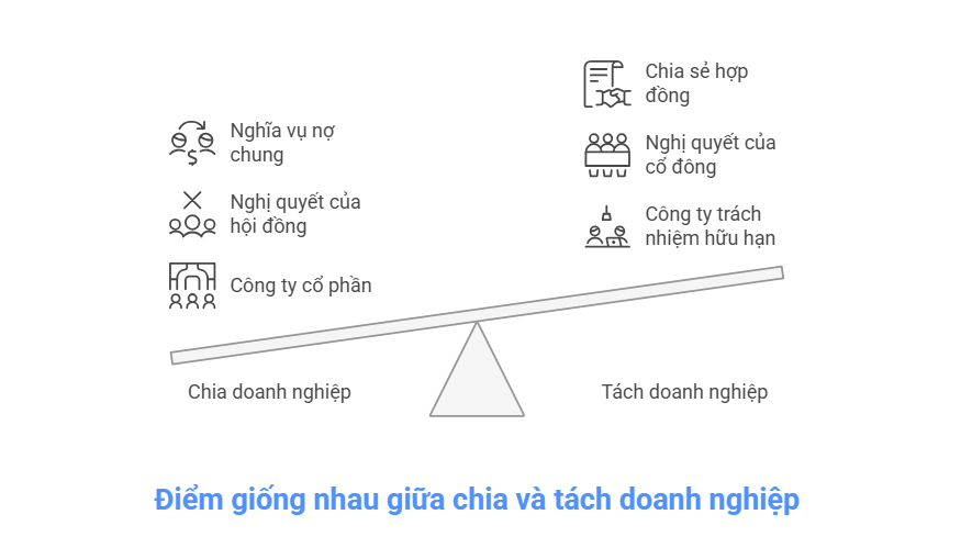 Chia và tách doanh nghiệp đều là những hình thức tổ chức lại doanh nghiệp với những điểm tương đồng đáng chú ý: